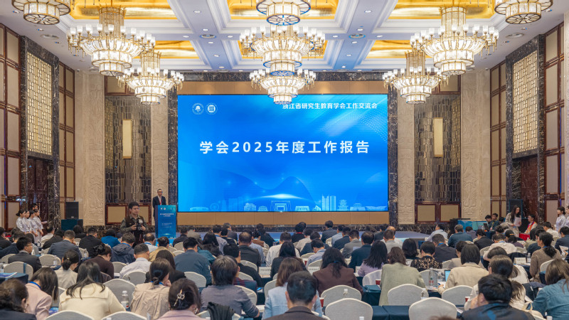 为深入学习贯彻党的二十大和二十届历次全会精神,落实教育强国建设与新质生产力发展要求,系统总结年度工作成效、研究部署下一阶段重点任务,共商研究生教育高质量发展路径,4月11日上午,浙江省研究生教育学会工作交流会在湖州召开。学会副理事长、浙江大学副校长夏群科,浙江省教育厅高教处处长、省学位办主任蓝邓骏,省教育厅高教处二级调研员吴振辉出席会议,省内10余所高校校长、副校长莅临会议,全省41家研究生培养单位的240余名代表齐聚一堂。学会秘书长、浙江大学学科建设处处长、学位办主任朱斌主持会议。本次会议由湖州师范大学承办。